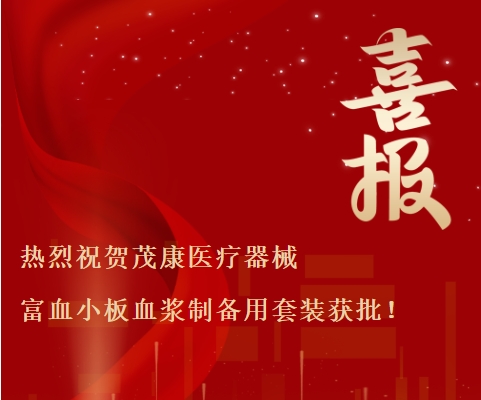 熱烈祝賀茂康醫(yī)療器械富血小板血漿制備用套裝獲批!